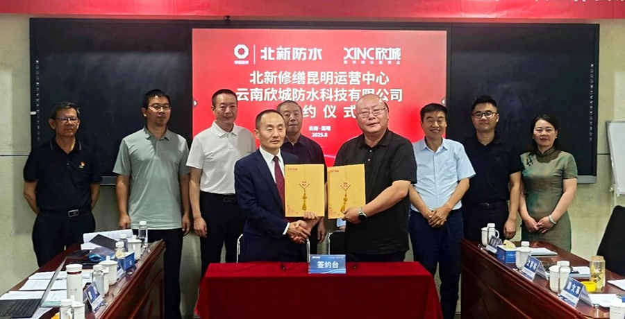 On August 21, Beixin Waterproofing Maintenance Business Department and Yunnan Xincheng Waterproof Technology Co., Ltd. held a visit exchange and signing symposium at the Yunnan Xincheng headquarters, and formally signed a strategic cooperation agreement. Chen Zhonghui, Deputy General Manager of Beixin Waterproofing Maintenance, and Liu Guanlin, Chairman of Yunnan Xincheng Waterproofing, represented their respective parties in signing the agreement.